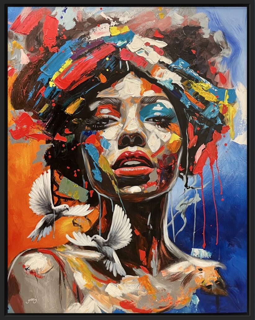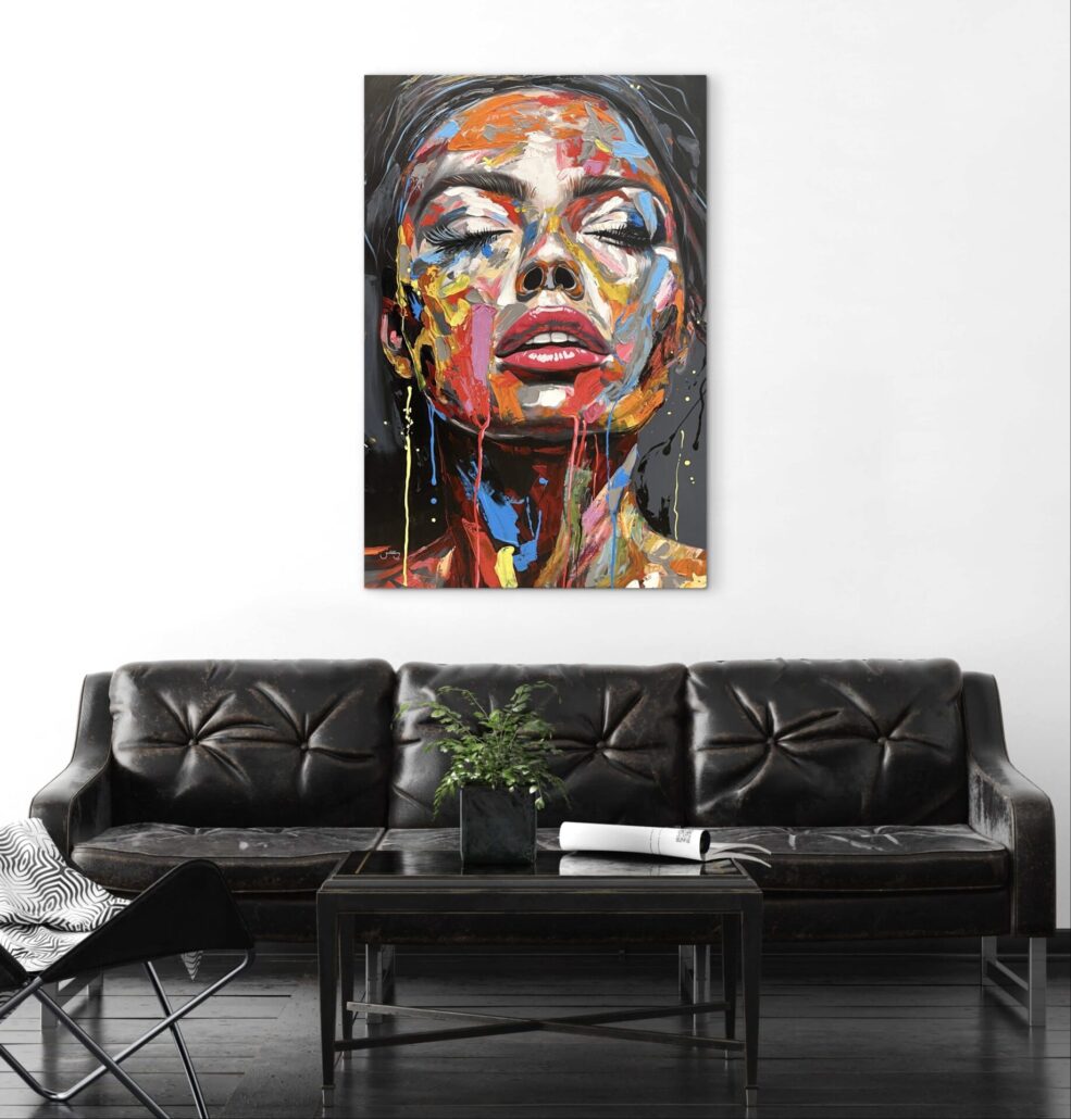 “Create your own style”. Maleriet måler 100 x 120 cm. Pris 11.000 kr.
