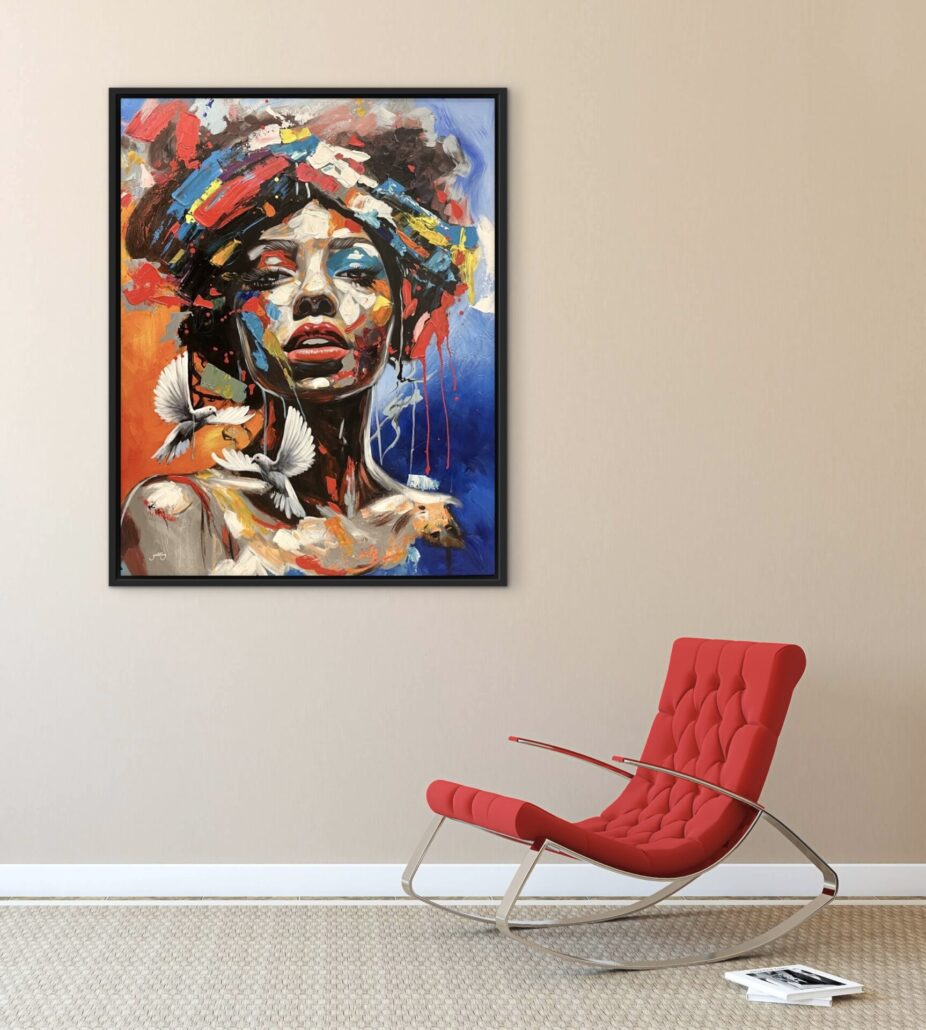 “Kvinde” – 100 x 50 cm. + svæveramme i mørkt træ – pris 3.400 kr.