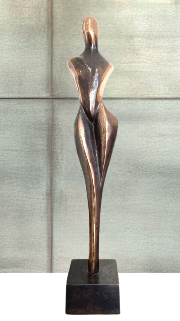 Stiliseret kvinde i bronze – enkel og elegant.