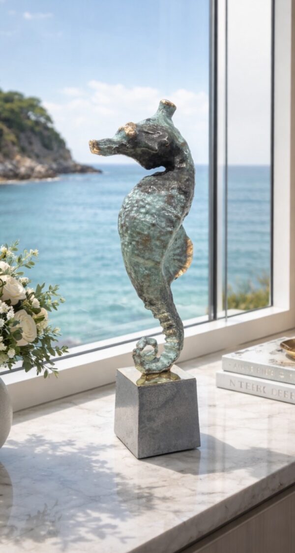 “Søhesten er et fascinerende dyr med sin oprette holdning, spiralformede hale og elegante, men også lidt kantede bevægelser gennem vandet. Dens særprægede form og den yndefulde måde, den bevæger sig på, gør den til et oplagt kunstnerisk motiv”.